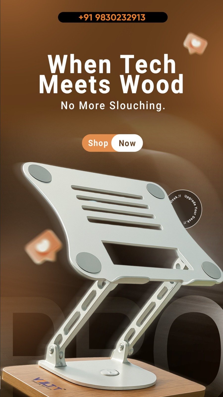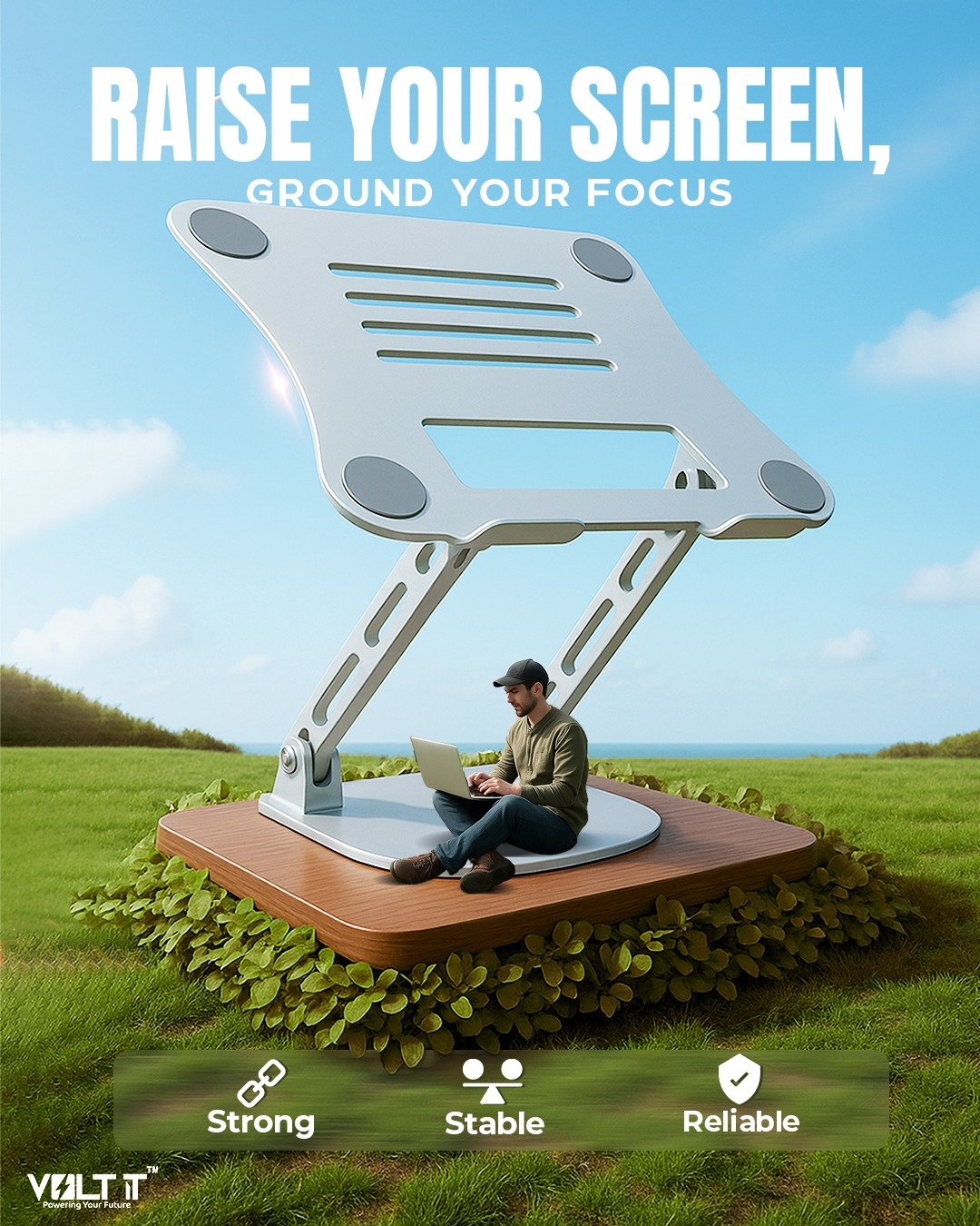 Raises your eye level to reduce neck strain