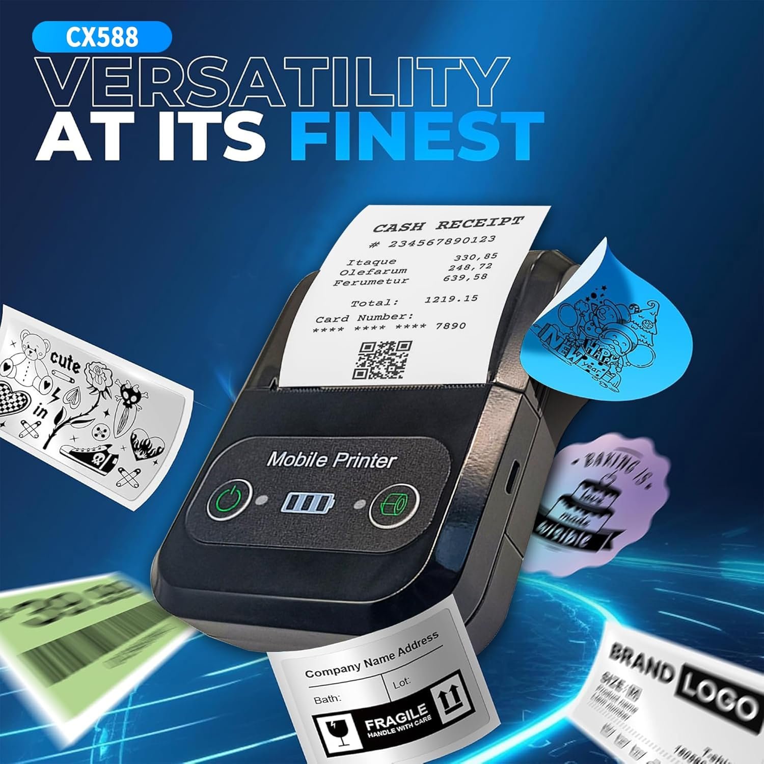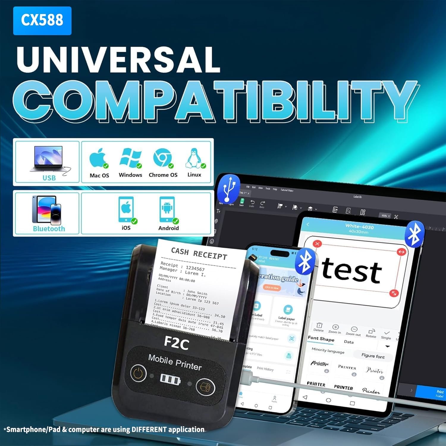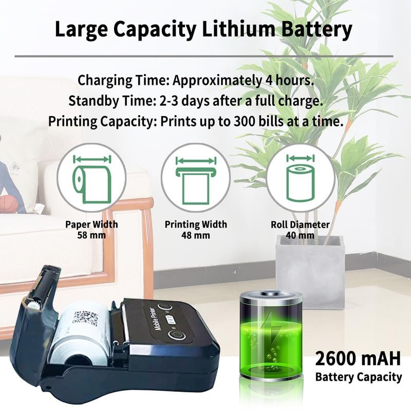 Supports 20–58mm paper width and 40mm diameter rolls