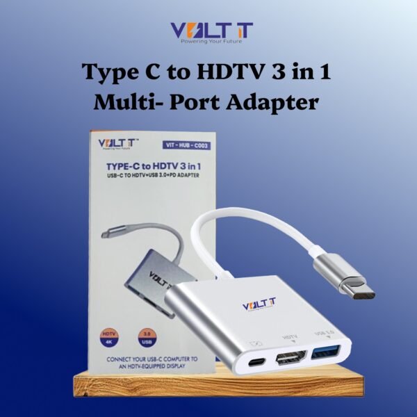 VOLT IT Type-C 3 -in-1 Multiport Adapter Transform a single Type-C port into a powerful connectivity hub. Designed for professionals, creators, and everyday users, the VOLT IT Type-C Hub delivers high-resolution display, fast charging, and seamless data transfer in a compact form